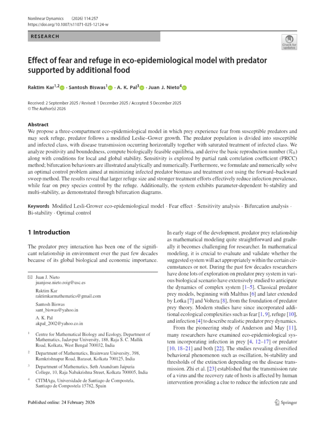 Raktim Kar, Santosh Biswas, A. K. Pal, Juan J. Nieto |
