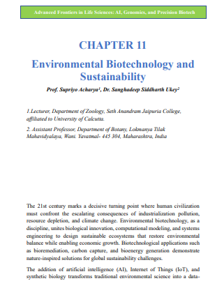 | Feb, 2026 | Advanced Frontier in Life Sciences: AI, Genomic and Precision Biotech-02 | Environmental Biotechnology and Sustainability | SCICRAFTHUB Publications | 978-81-996857-0-3 | Document |