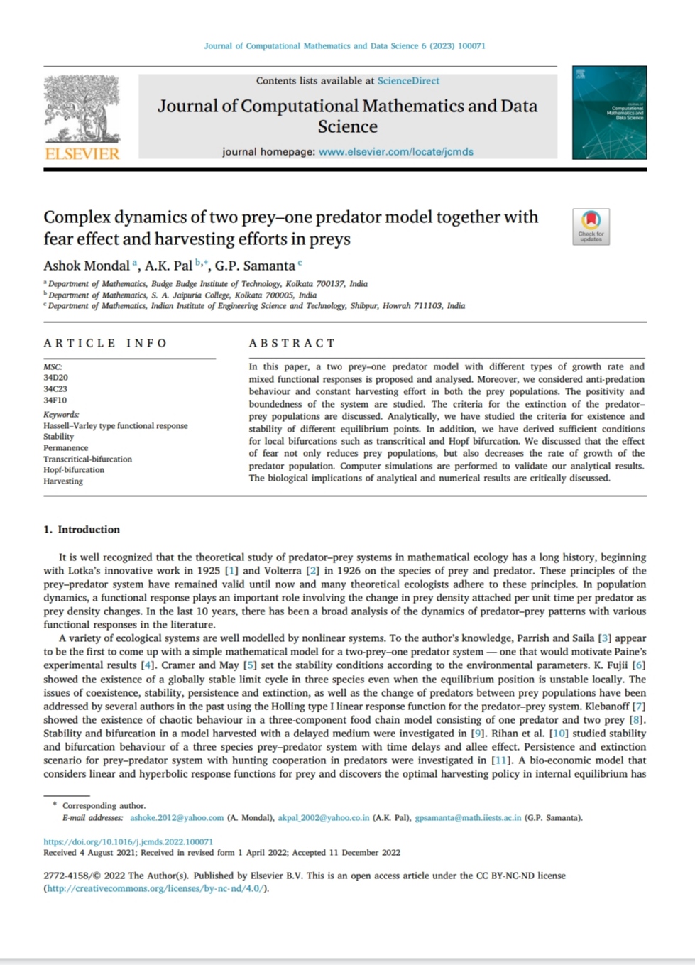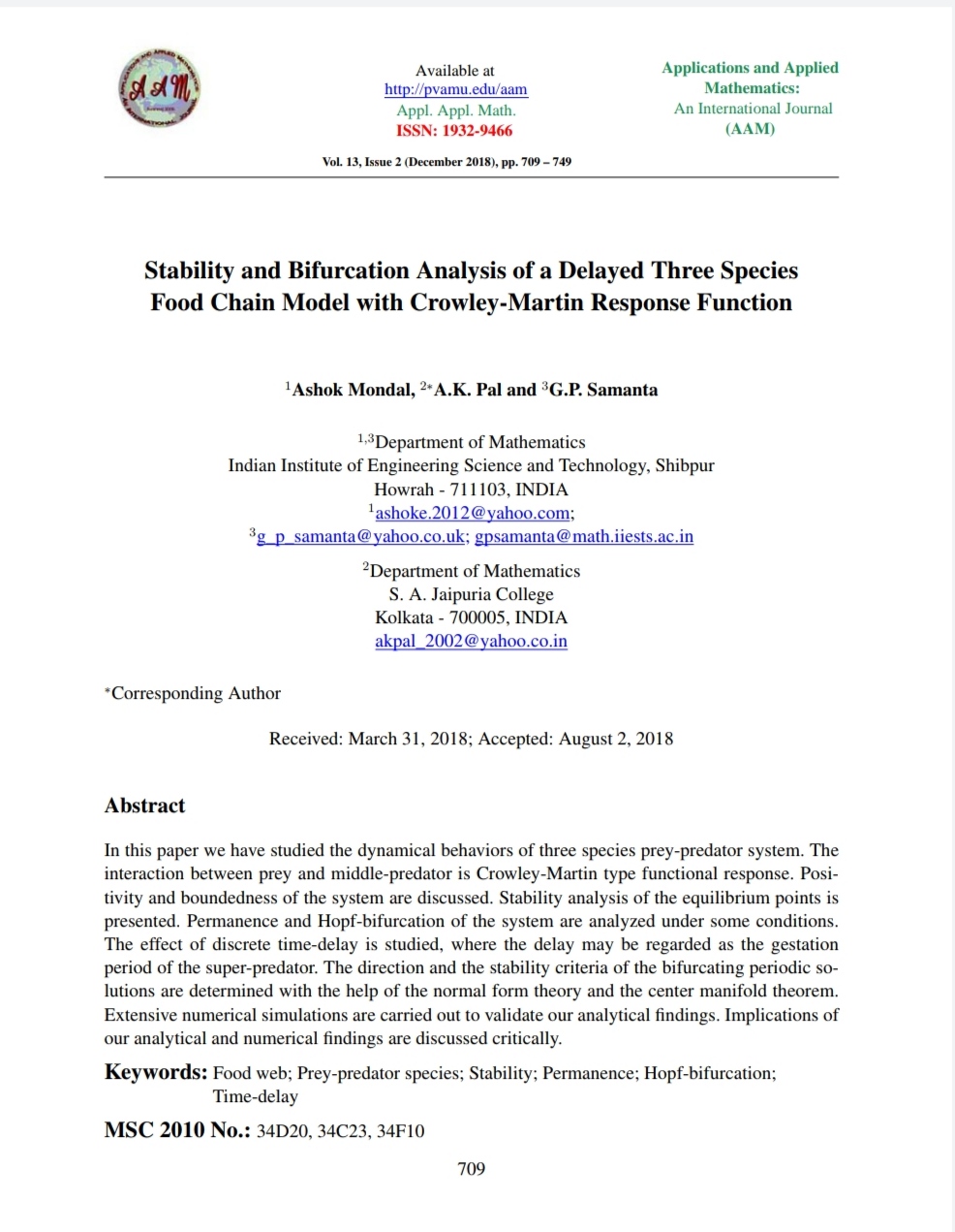 Ashok Mondal, A. K. Pal, G. P. Samanta |