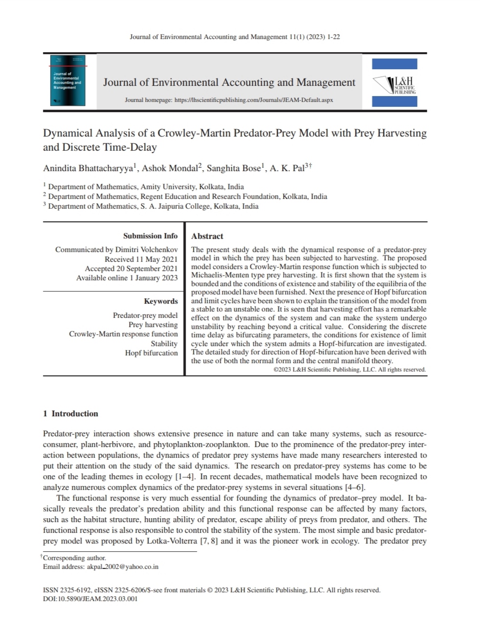 Journal of Environmental Accounting and Management |