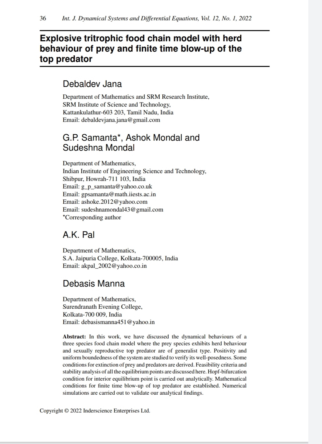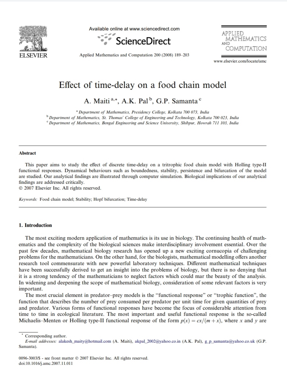 A. Maiti, A. K. Pal, G. P. Samanta |