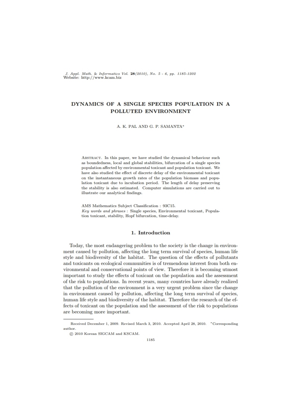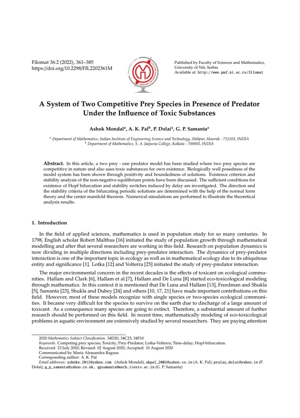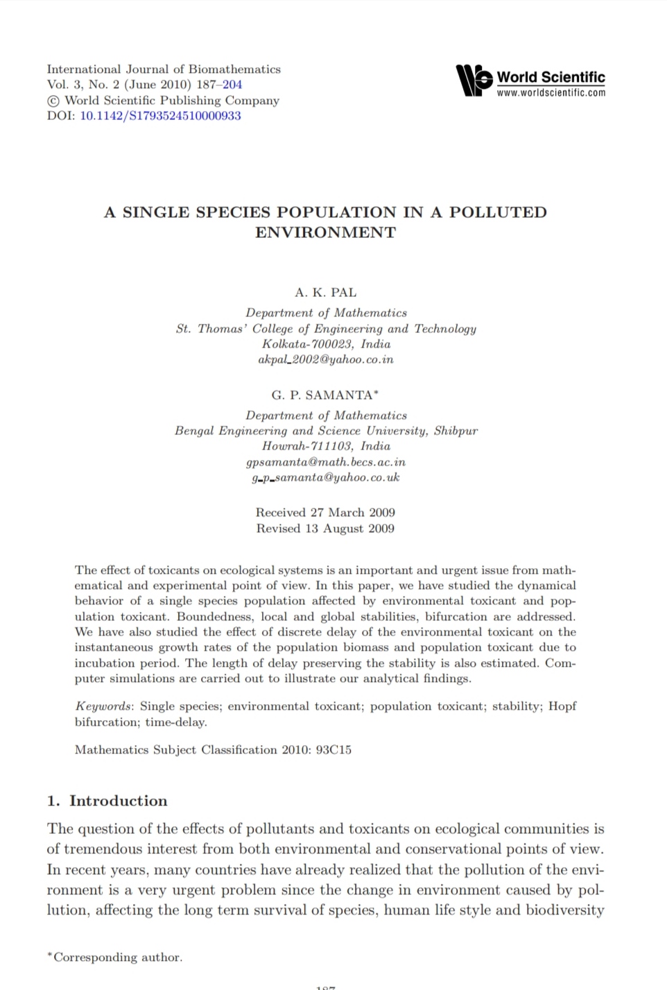 A. K. Pal, G. P. Samanta |