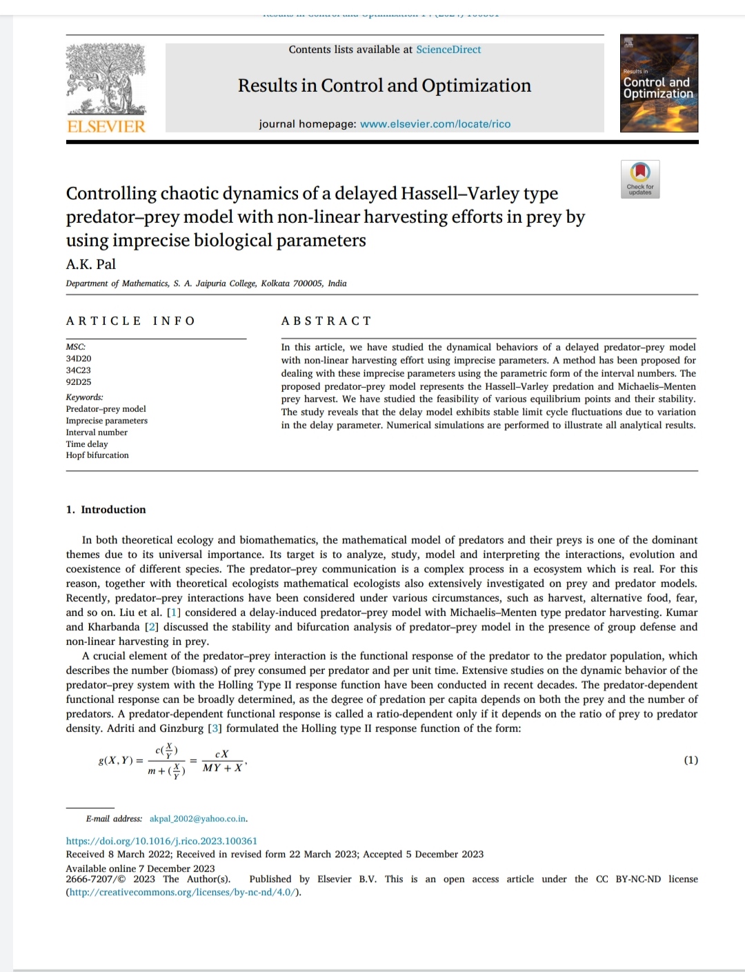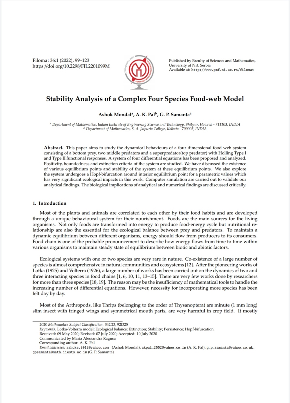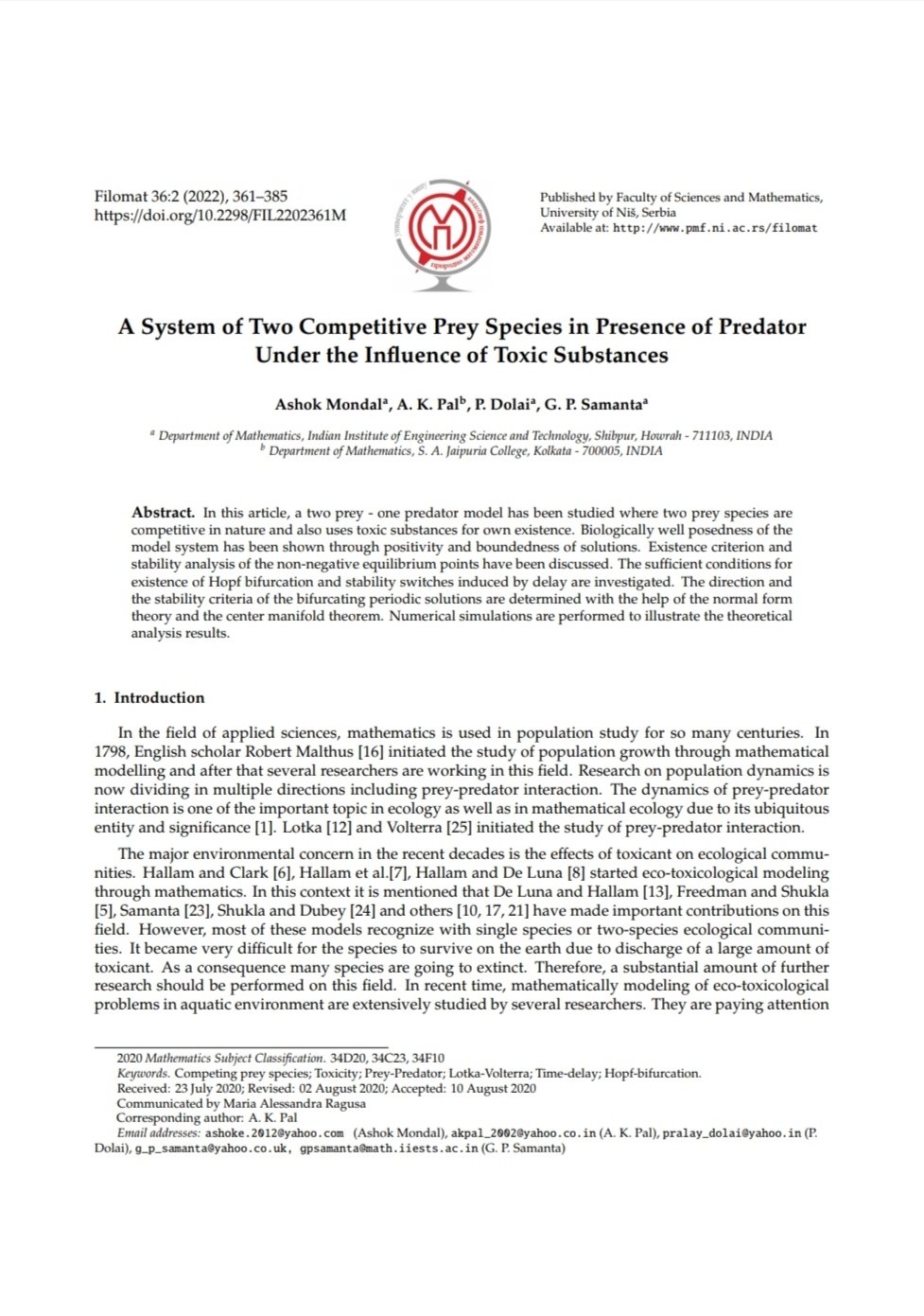 A. K. Pal, G. P. Samanta |
