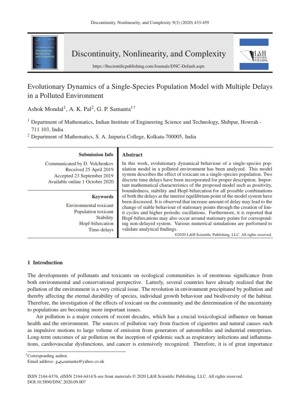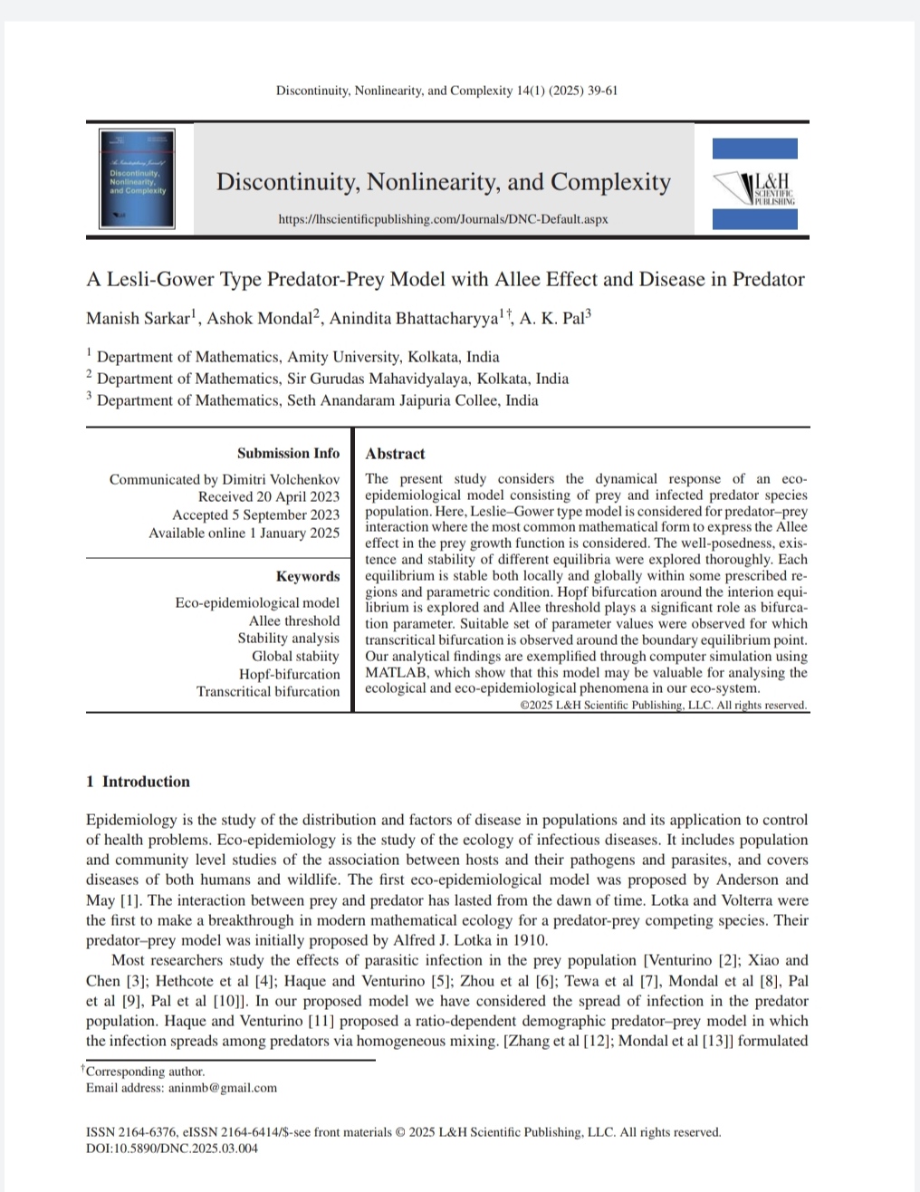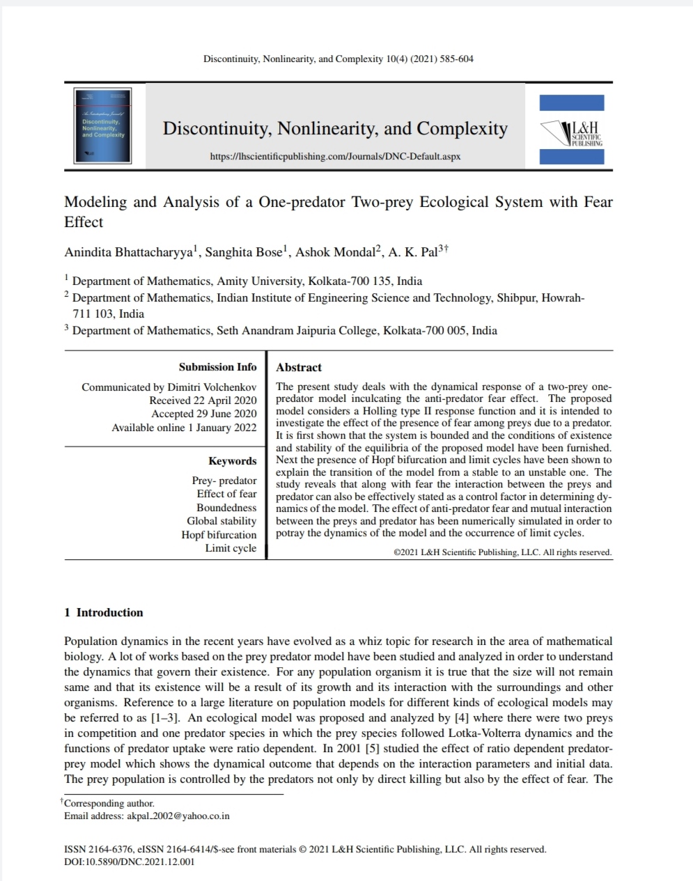 Journal of Discontinuity, Nonlinearity and Complexity |