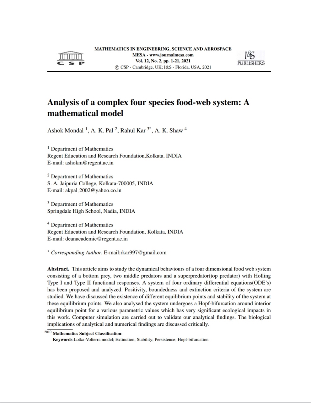 Ashok Mondal, A. K. Pal, Rahul Kar, A. K. Shaw |