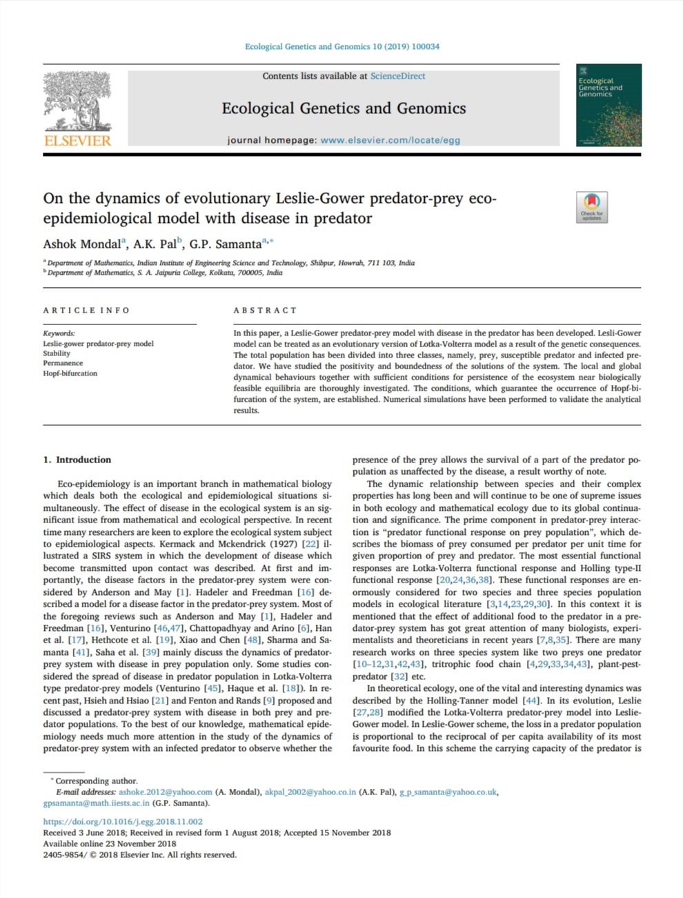 A. K. Pal, P. Dolai, G. P. Samanta |