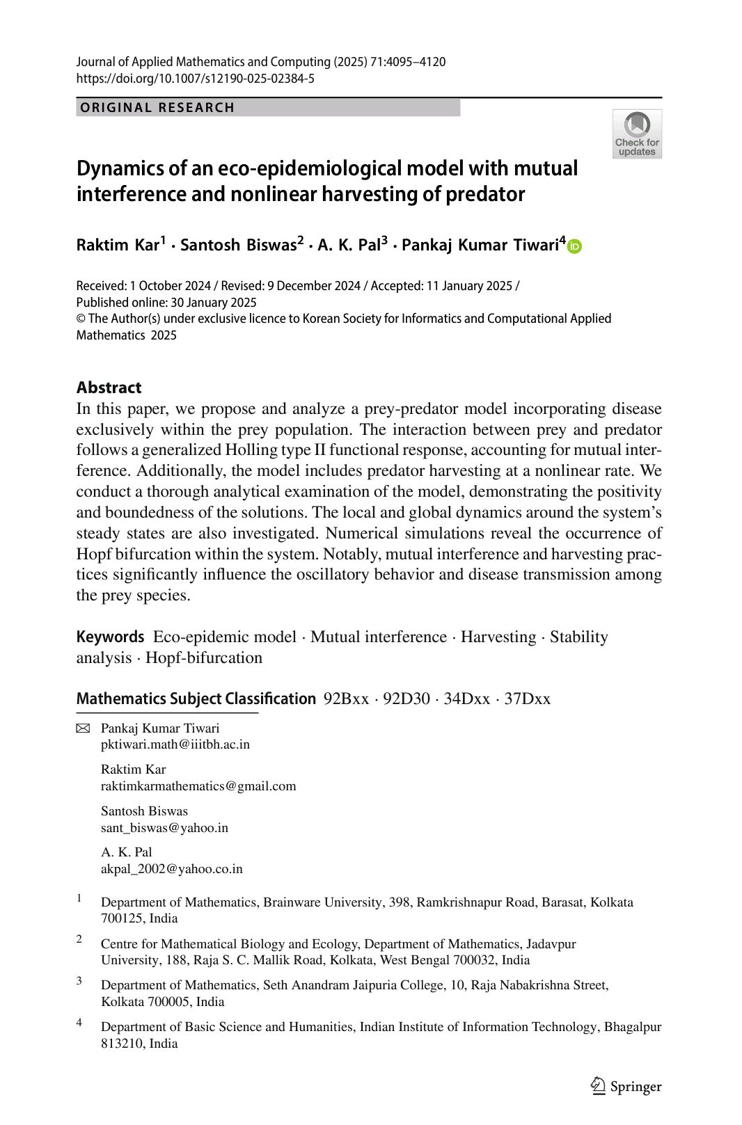 Raktim Kar, Santosh Biswas, A. K. Pal, Pankaj Kumar Tiwari |