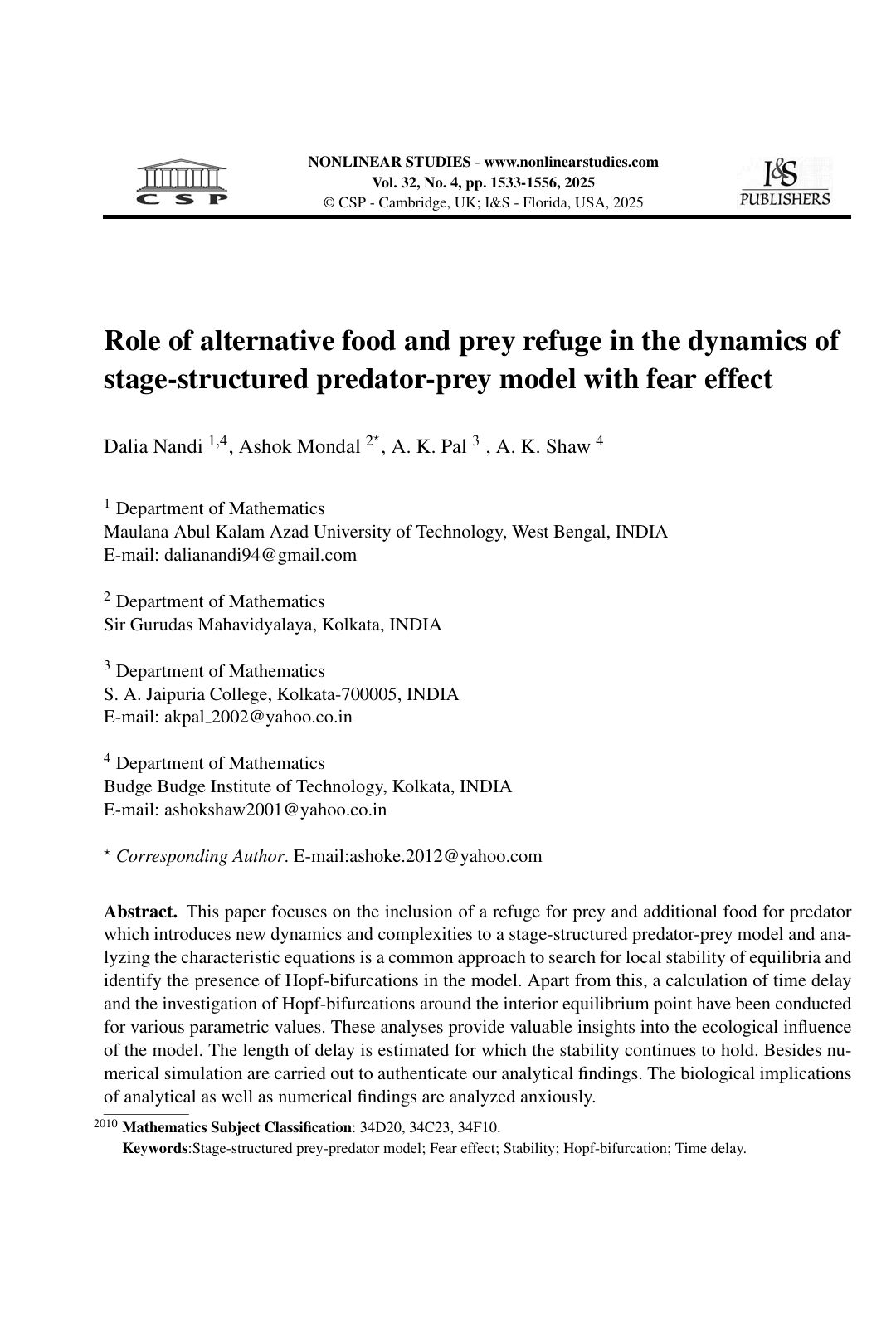 Dalia Nandi, Ashok Mondal, A. K. Pal, A. K. Shaw |