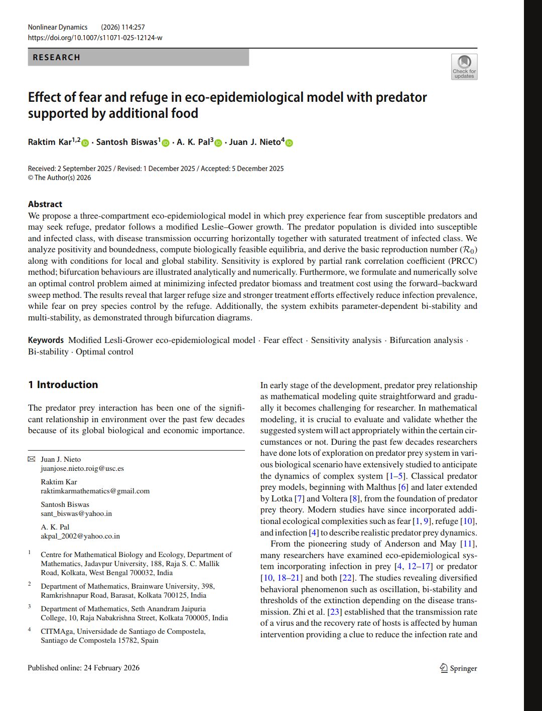 Raktim Kar, Santosh Biswas, A. K. Pal, Juan J. Nieto |