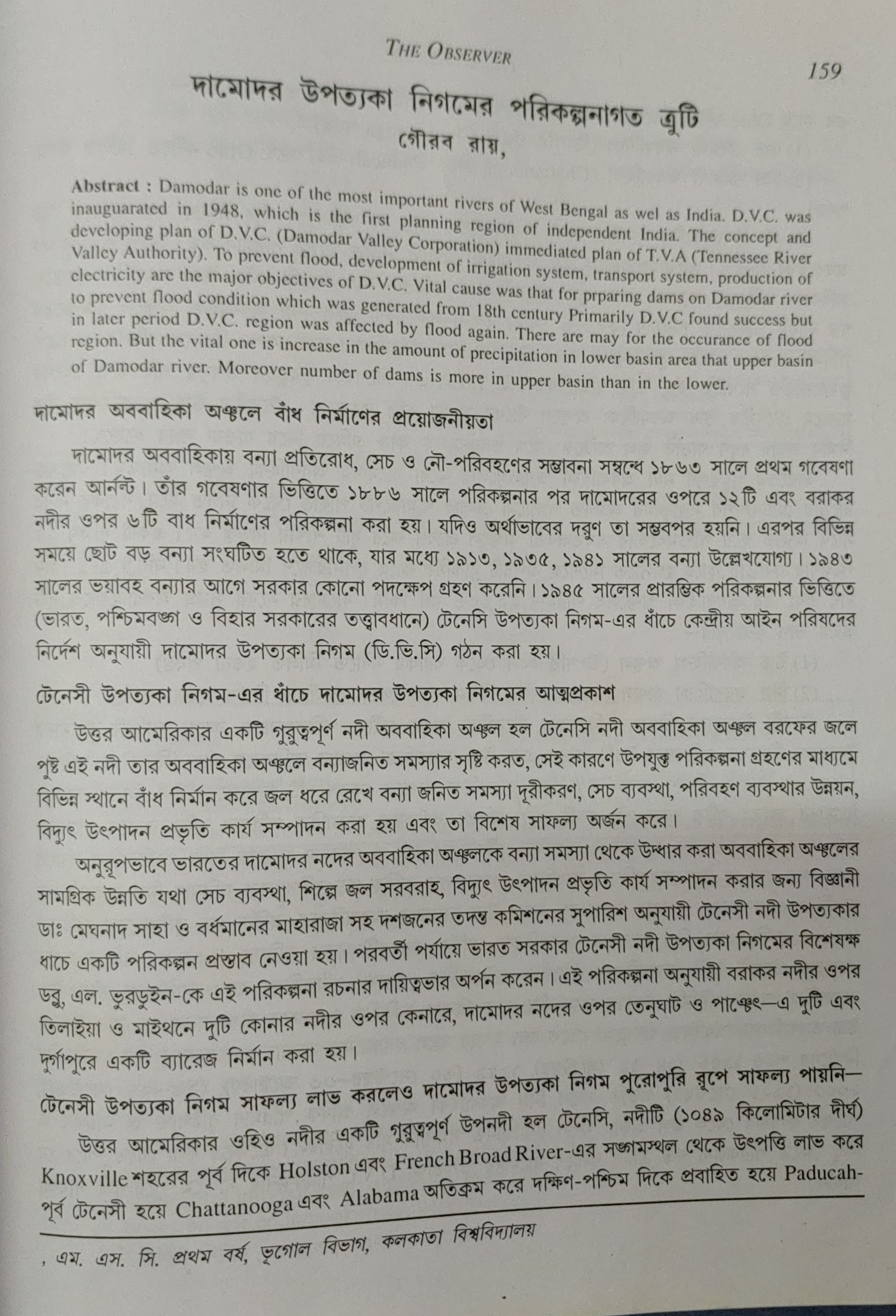 | Mar, 2012 | "Damodar Upottoka Nigam er porikolponagoto truti" | The Observer | 50 | Gourab Roy | 2230-9535 | No | Regional Planning | Document |